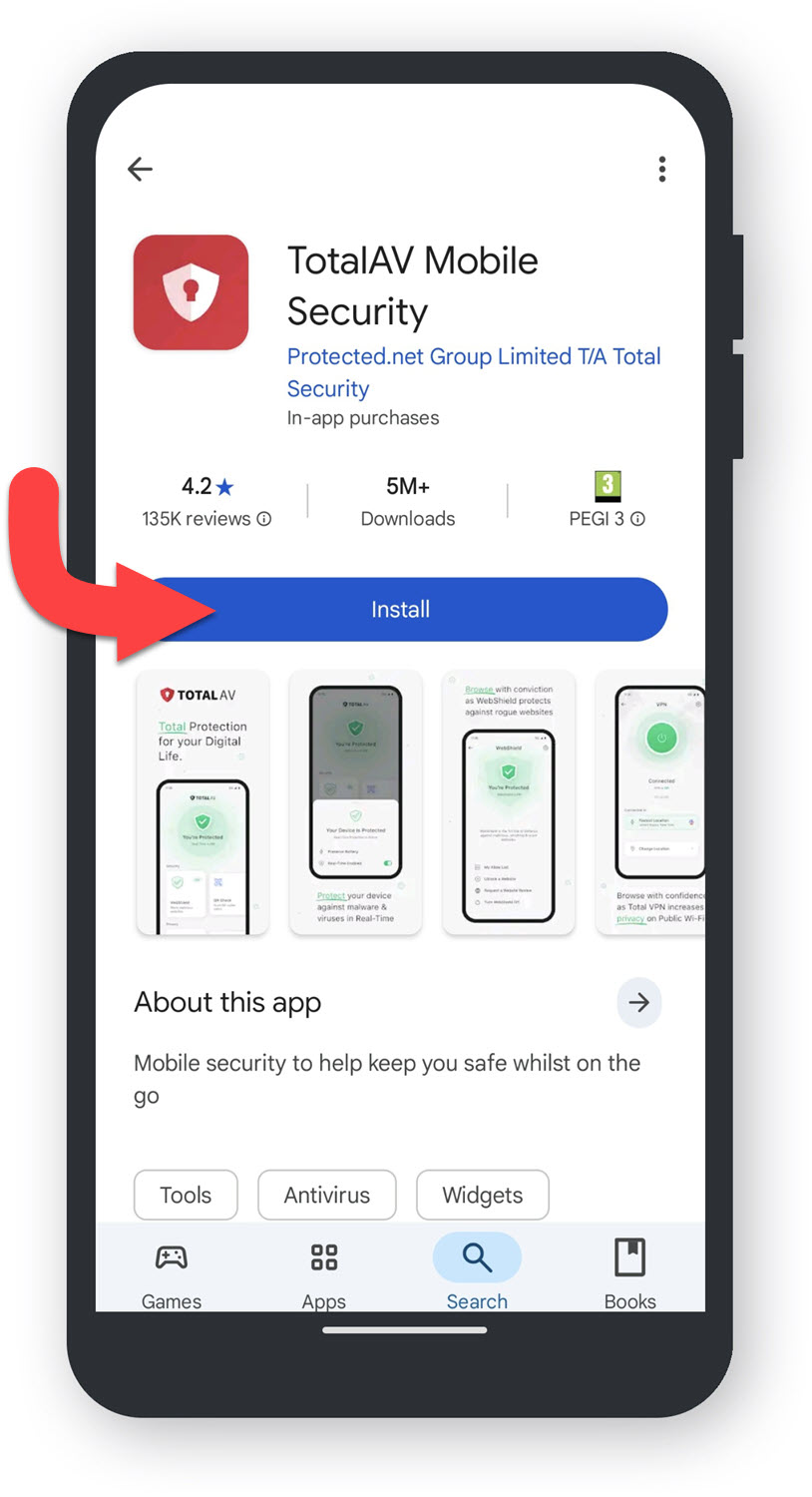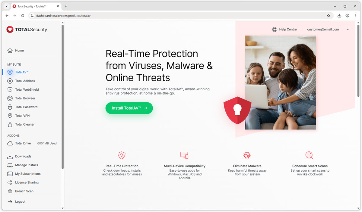Aby pobrać TotalAV, musisz przejść do Portal internetowy i zainstalować go, klikając przycisk Zainstaluj TotalAV.