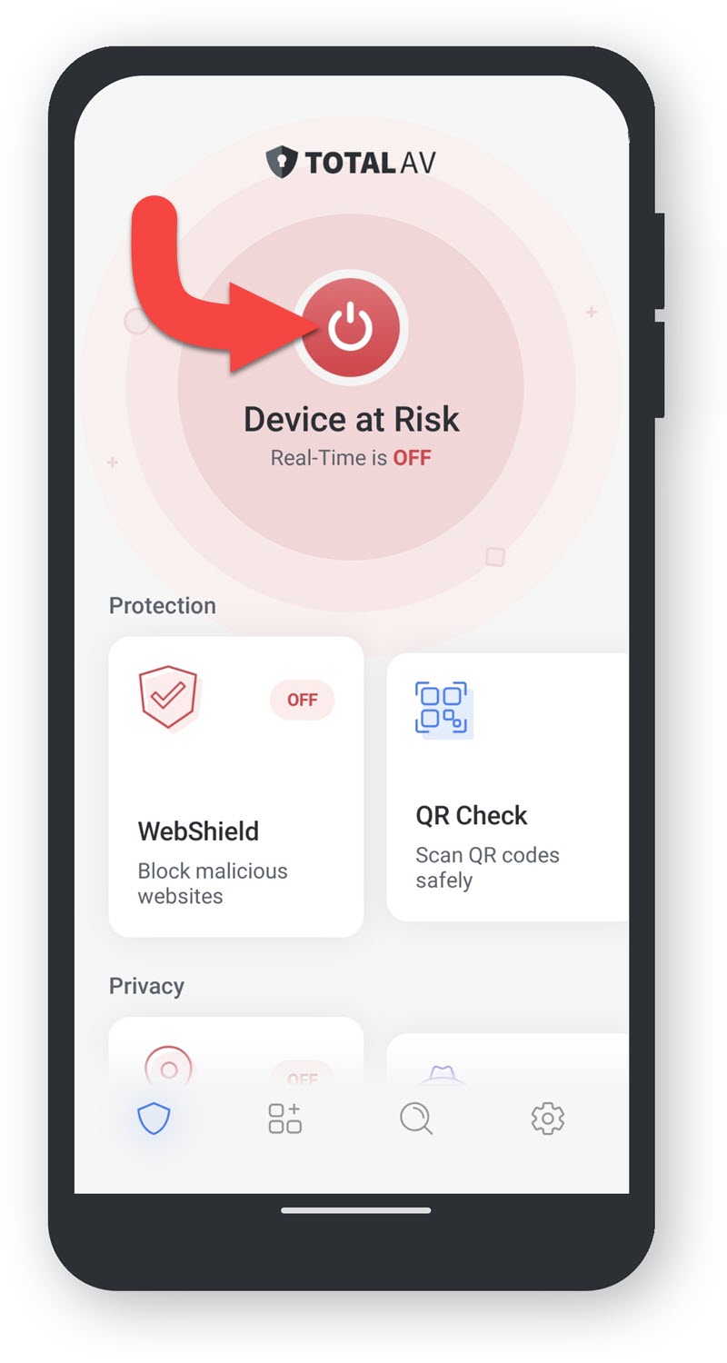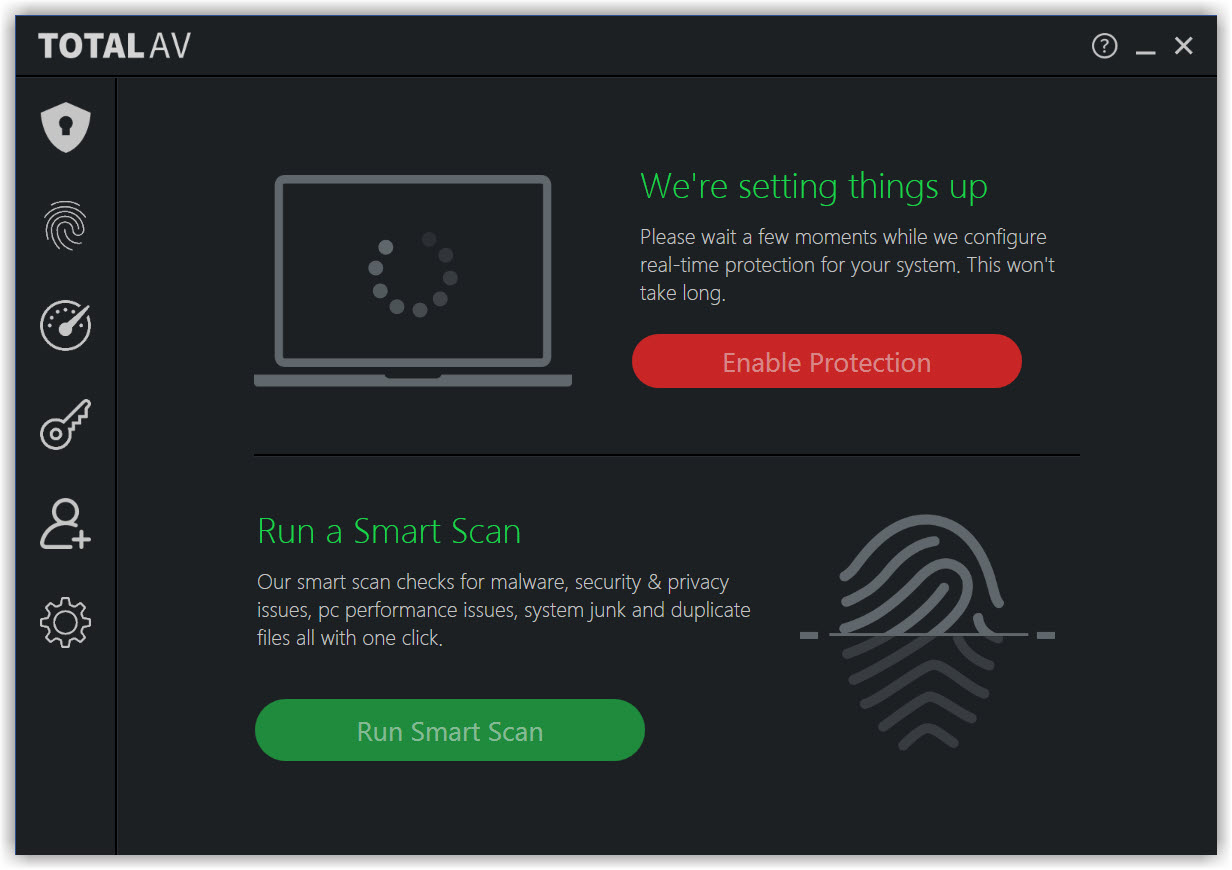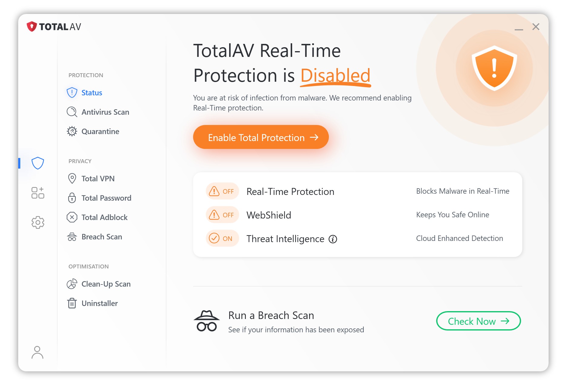 Ochrona w czasie rzeczywistym zostanie aktywowana po kilku sekundach od momentu pełnego zainstalowania TotalAV lub będzie wymagała kliknięcia Włącz ochronę w czasie rzeczywistym.