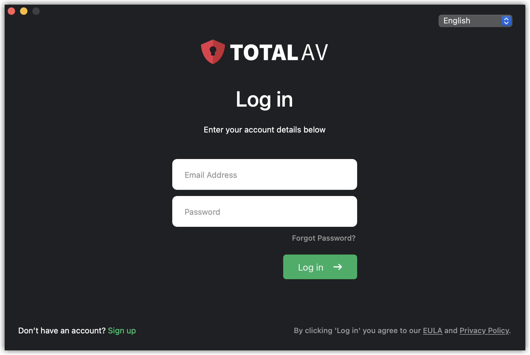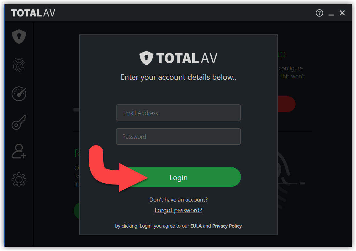Wprowadź dane logowania TotalAV i kliknij Zaloguj się.