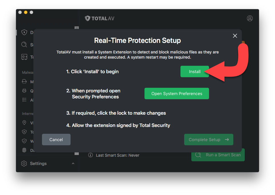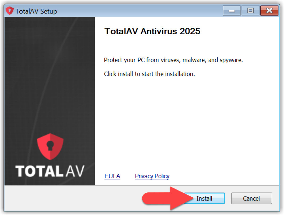 Gdy otworzy się okno instalacyjne TotalAV, kliknij Zainstaluj.