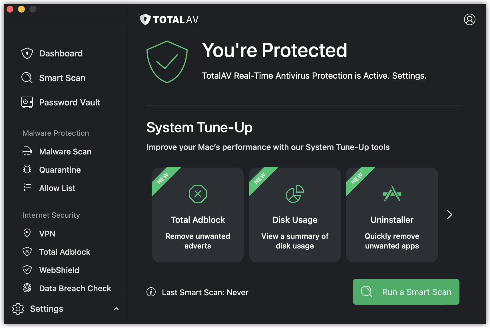 TotalAV jest teraz w pełni zainstalowany. Kliknij Rozpocznij skanowanie, aby rozpocząć skanowanie systemu. Po zakończeniu skanowania przejrzyj i rozwiąż wszystkie problemy wykryte przez TotalAV.